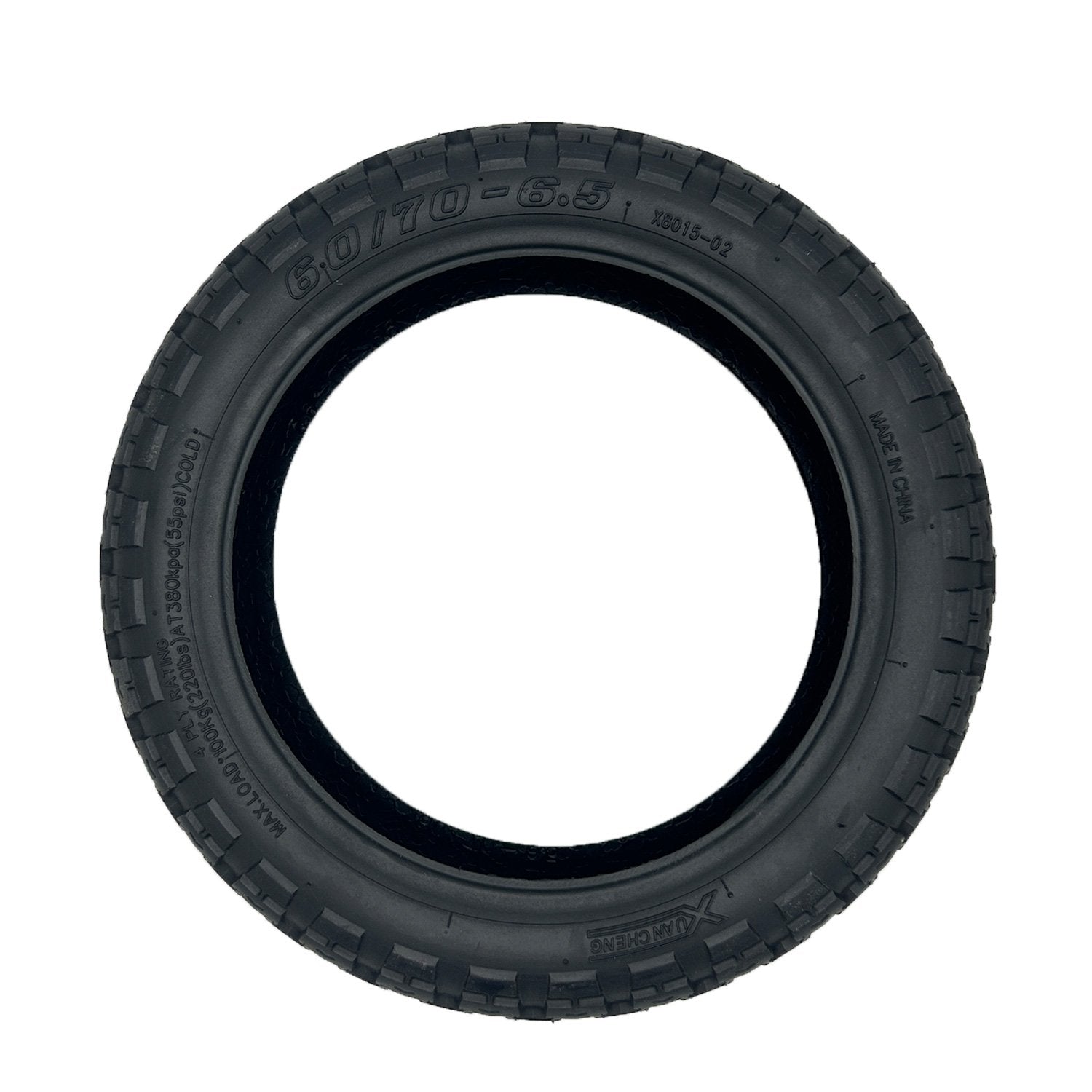 Pneu tubeless « Offroad » 60/70-6.5 avec gel auto-obturant intégré, idéal pour les trottinettes électriques équipées de jantes 6.5 pouces. Son profil cranté profond assure une adhérence maximale sur chemins, gravillons, boue ou revêtements irréguliers, tout en conservant un bon confort de conduite sur route.