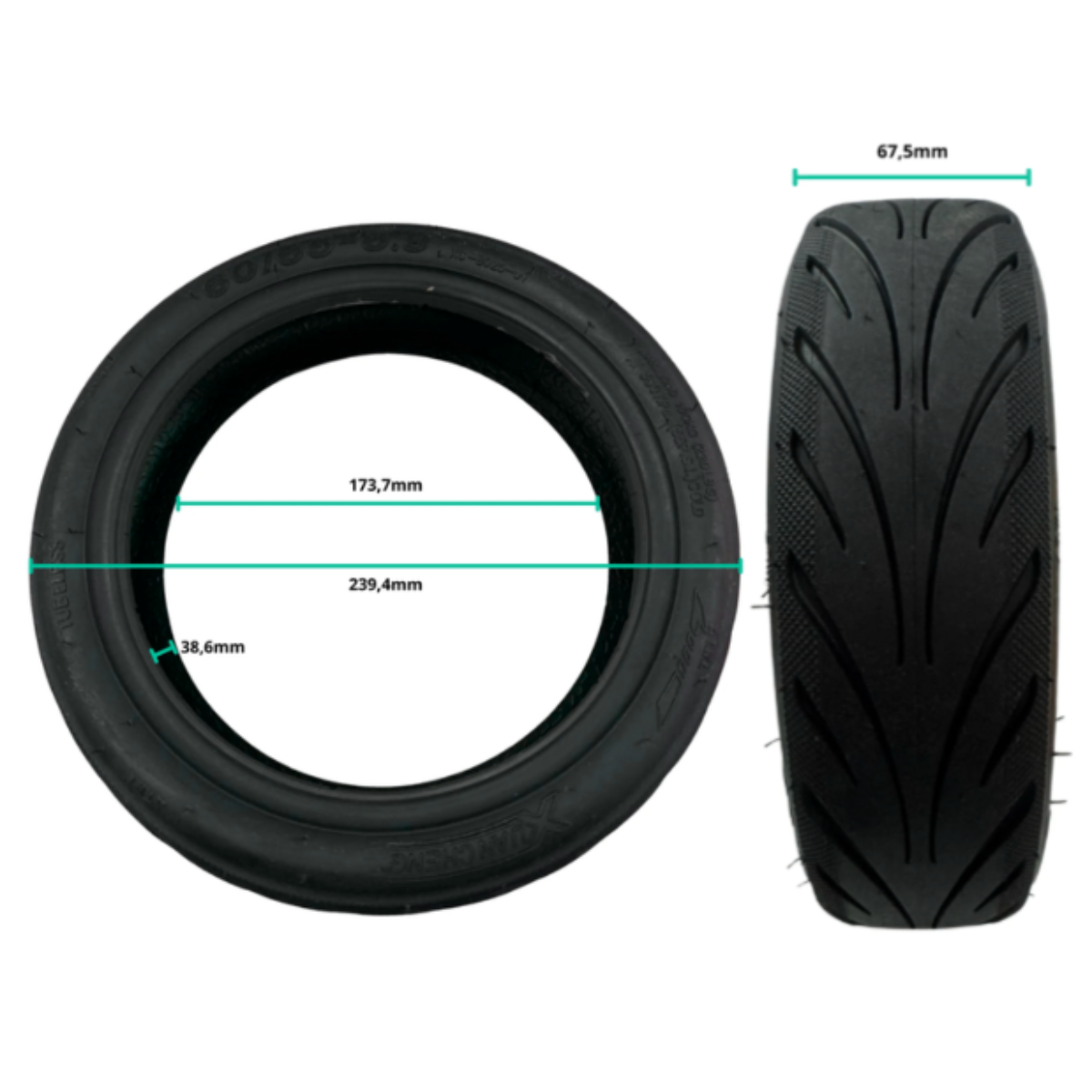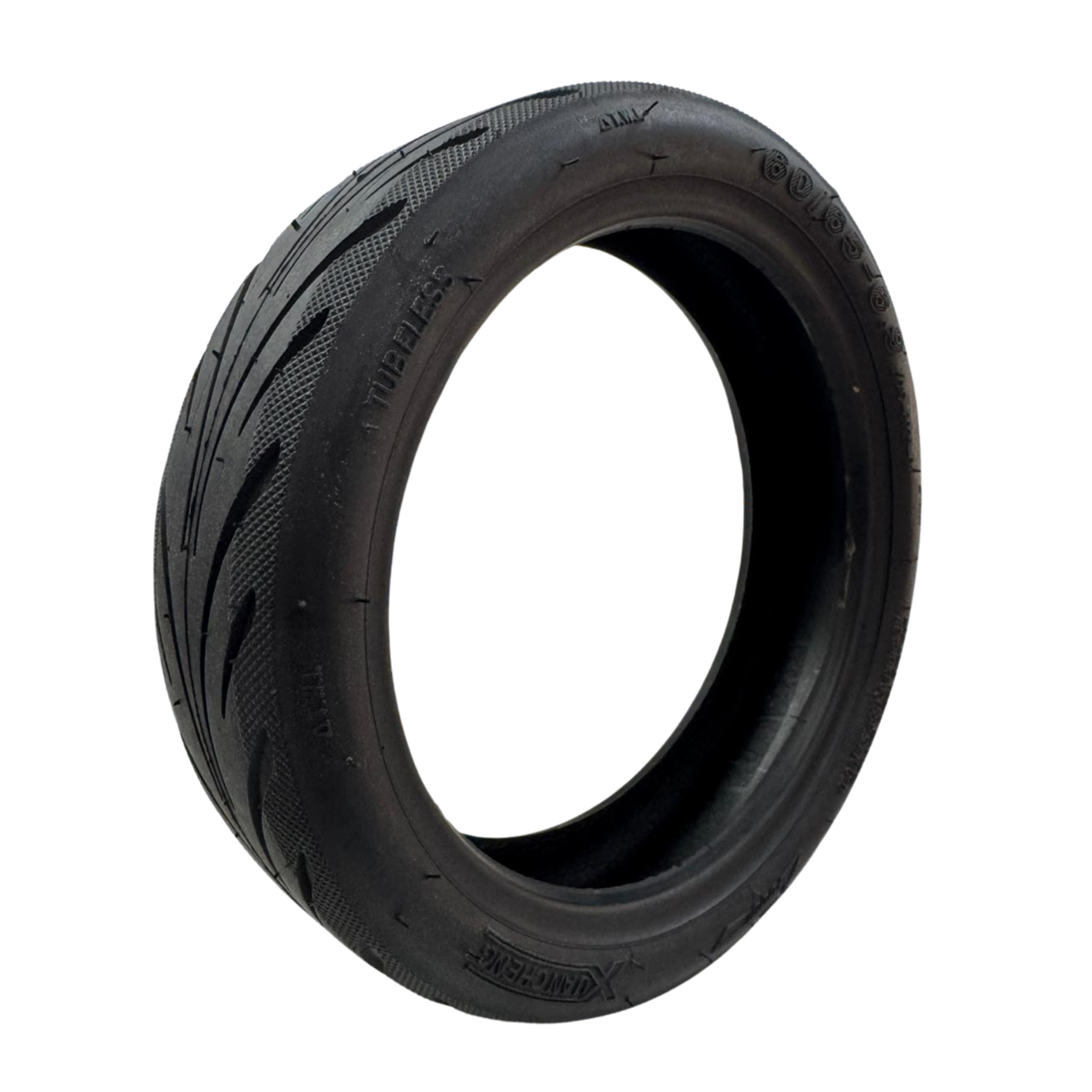 Pneu tubeless (sans chambre à air) de taille 60/65-6.9, conçu pour offrir une stabilité et un confort de conduite supérieurs sur les trottinettes électriques urbaines de dernière génération. Sa structure renforcée et son profil optimisé permettent une excellente absorption des chocs et garantissent une tenue de cap précise sur l'asphalte.