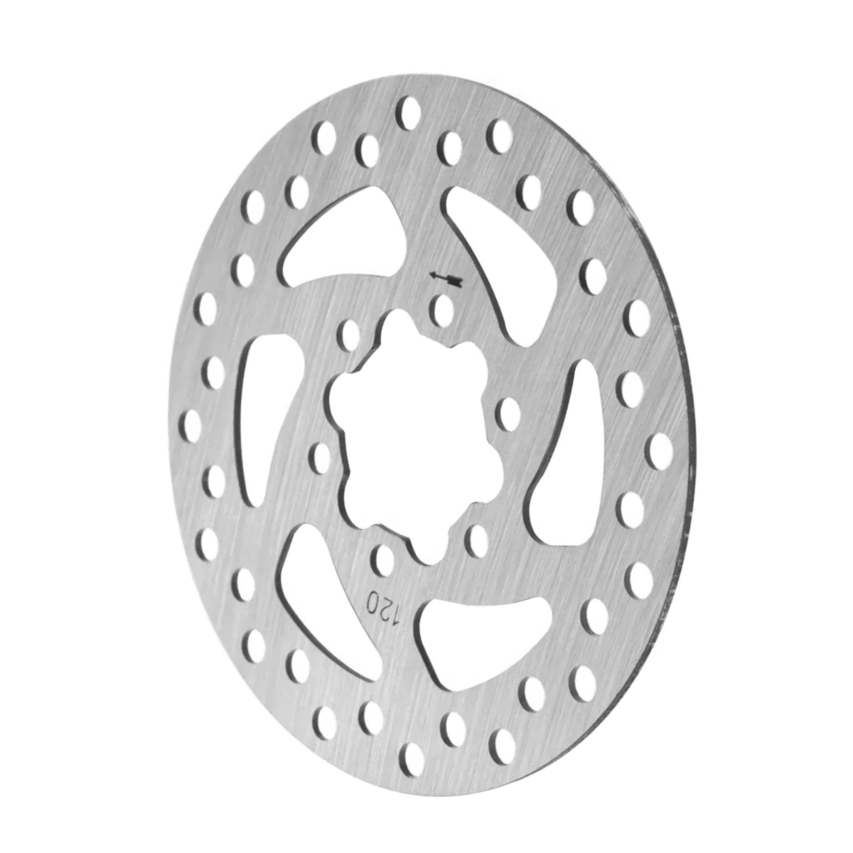 Disque de frein 120 mm à fixation 6 trous avec entraxe de 44 mm, compatible avec de nombreuses trottinettes électriques équipées de freins à disque compacts. Ce diamètre est particulièrement adapté aux montages d’origine sur trottinettes légères ou à faible encombrement.