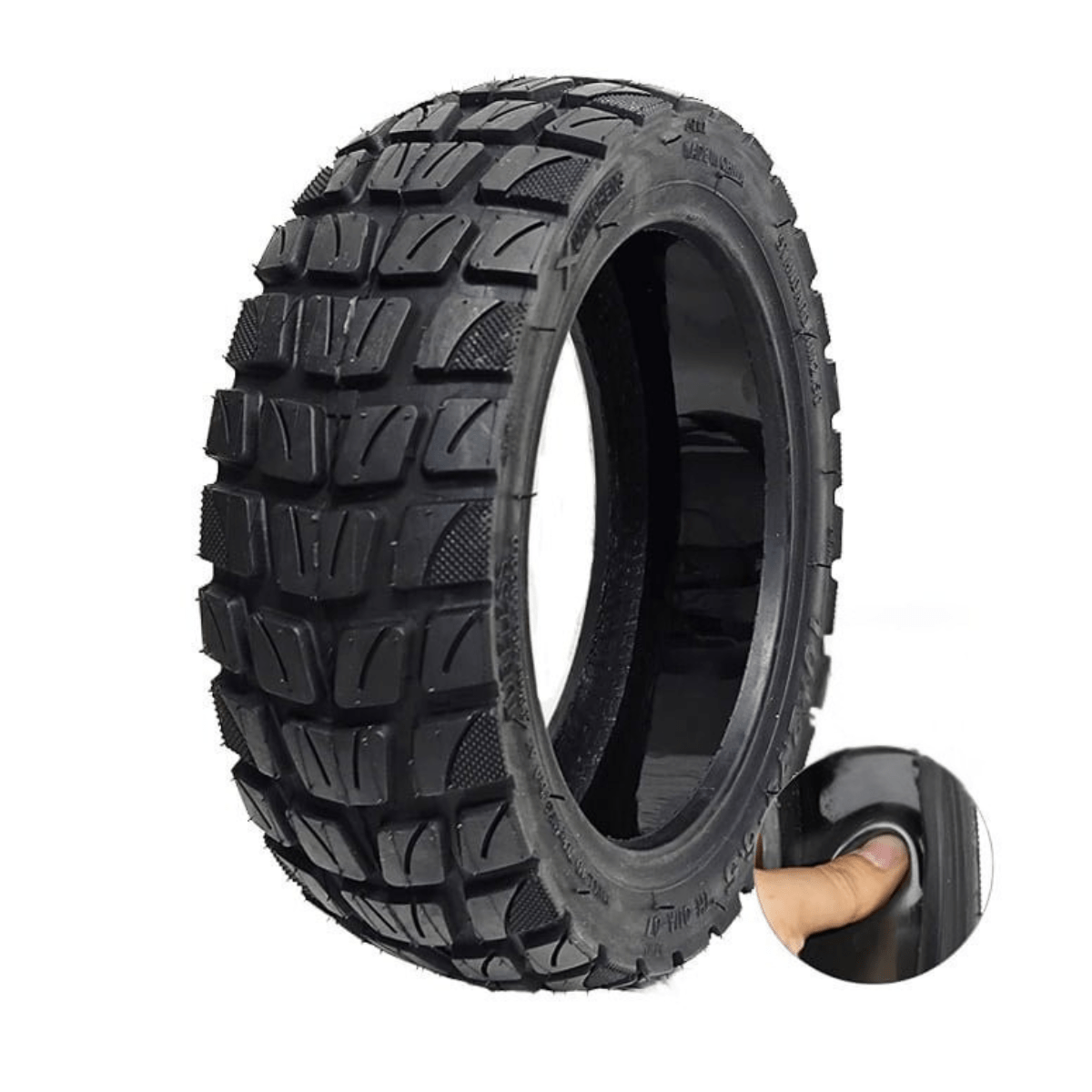 Pneu tubeless « Offroad » 10x2.75-6.5 avec gel auto-obturant intégré, idéal pour les trottinettes électriques 10 pouces. Ce modèle polyvalent combine le confort d’un pneu routier avec l’adhérence d’un pneu tout-terrain léger, parfait pour une utilisation mixte entre ville et chemins.