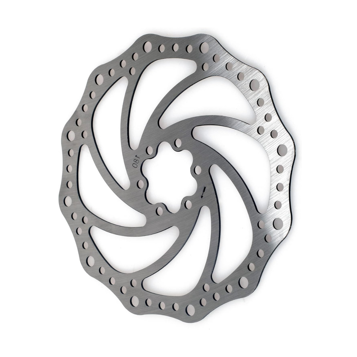 Disque de frein 180 mm à fixation 6 trous compatible avec de nombreuses trottinettes électriques équipées de freins à disque. Ce disque assure un freinage puissant et progressif, idéal pour améliorer la sécurité et le contrôle, notamment à vitesse élevée.