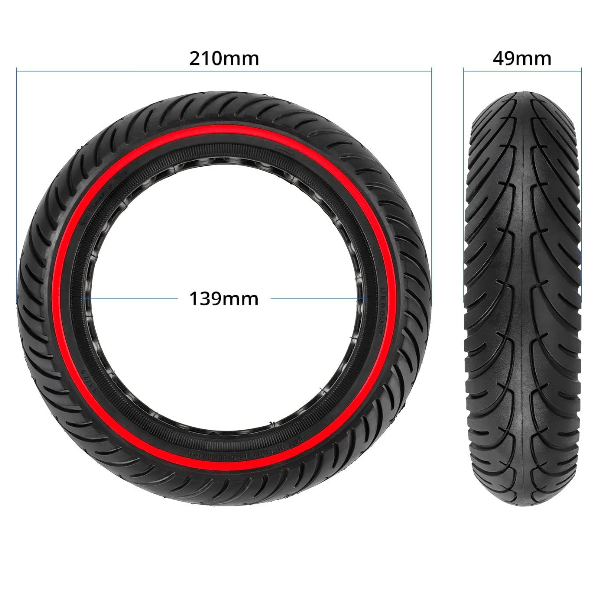 - 1x pneu plein 8,5" (8,5x2-6,1) avec liseré rouge compatible trottinettes 8,5"