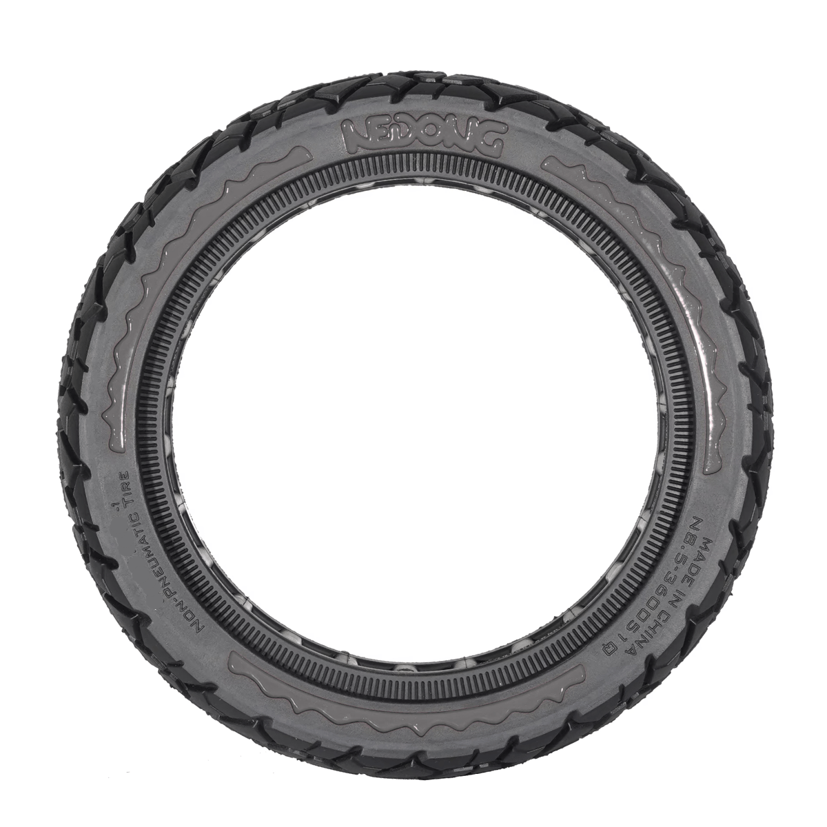 Pneu plein "Offroad" 10x2,125-6,5 anti-crevaison, conçu pour les trottinettes électriques équipées de roues 10 pouces. Ce modèle tout-terrain plein remplace les pneus à chambre à air et supprime définitivement le risque de crevaison, tout en offrant une excellente adhérence et une grande stabilité sur tout type de surface.