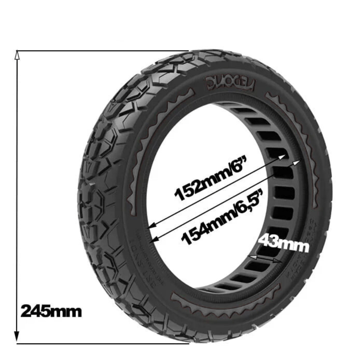 Grâce à sa bande de roulement à crampons, il offre une traction renforcée sur route, gravier, herbe ou chemins irréguliers. Sa structure alvéolaire interne permet un bon amorti et réduit les vibrations pour un confort accru. Fabriqué en caoutchouc haute densité renforcé, il garantit durabilité et sécurité, même lors d’utilisations intensives.